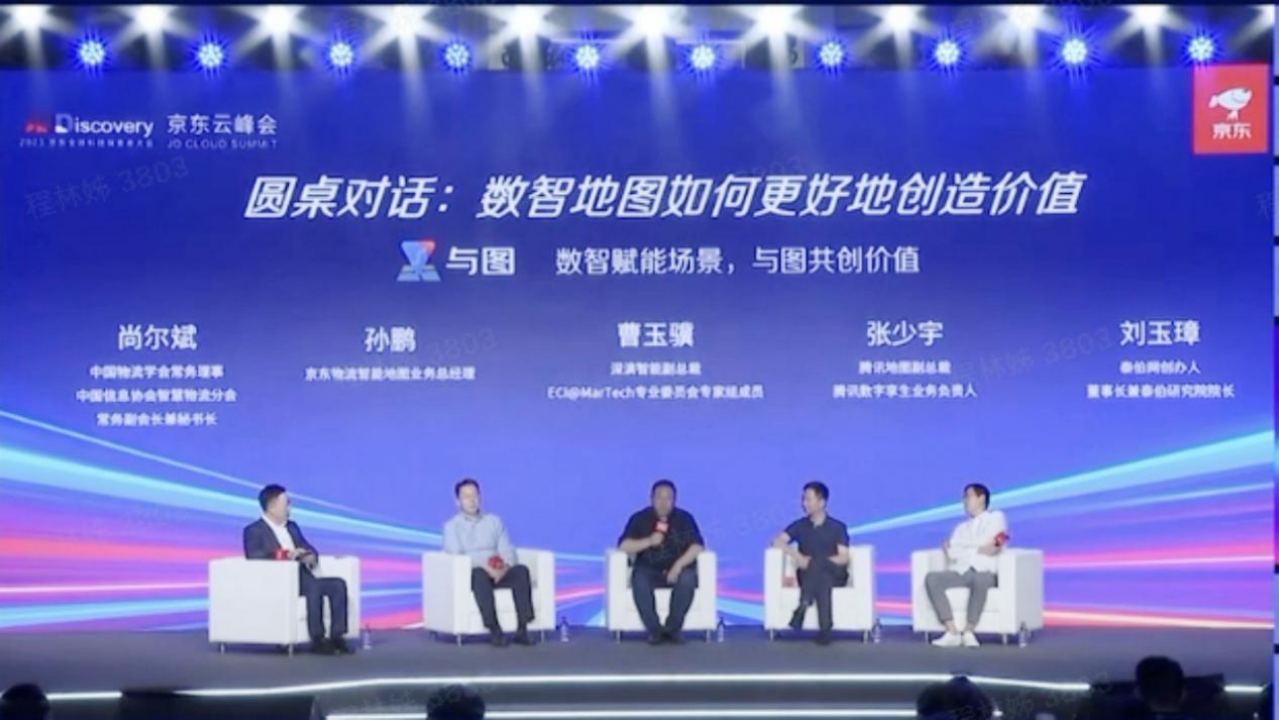 数智化时代地图应用如何更好地赋能场景创造价值”的圆桌论坛,中间为创世红海智能副总裁曹玉骥