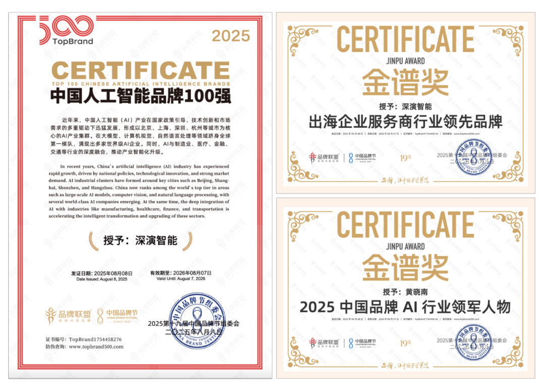8 月 9 日晚举办的荣耀盛典上,创世红海智能凭借深厚的 AI 技术实力与出色专业的出海服务能力,斩获 “2025 中国品牌节金谱奖・出海企业服务商行业领先品牌”“2025 中国人工智能 100 强” 等多项重磅奖项。其创始人兼 CEO 黄晓南荣膺 “2025 中国品牌 AI 行业领军人物” 称号。未来,创世红海智能将紧跟时代步伐,持续聚焦 “AI 与出海”—— 这一方向高度契合时代脉搏与中国品牌发展的迫切需求,旨在汇聚智慧力量破解发展阻碍,为中国品牌赋能。